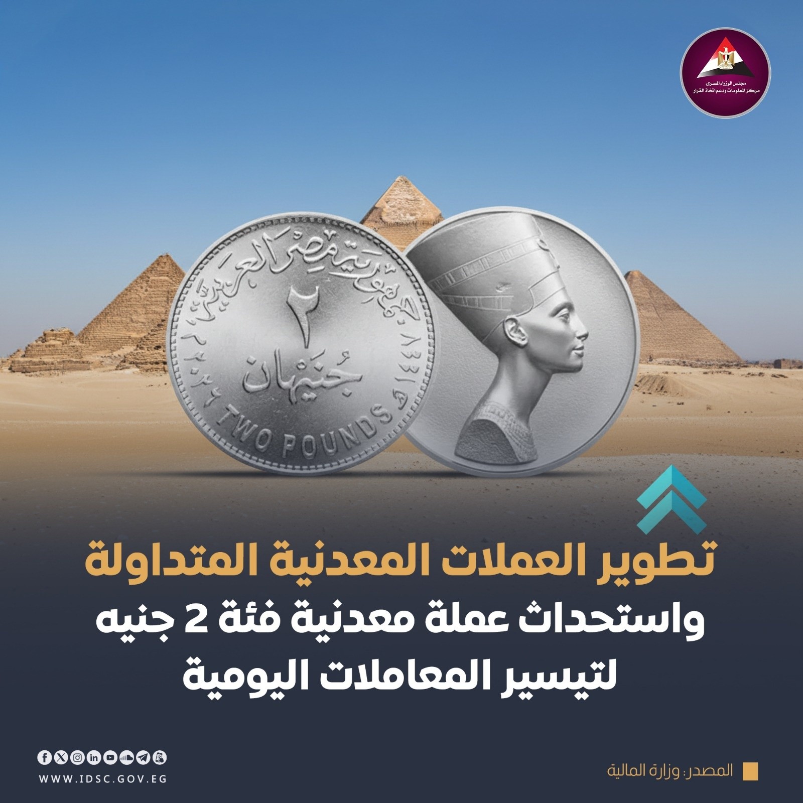 «الخزانة العامة» تعلن تطوير العملات المعدنية دون إلغائها.. واستحداث فئة 2 جنيه قريبًا