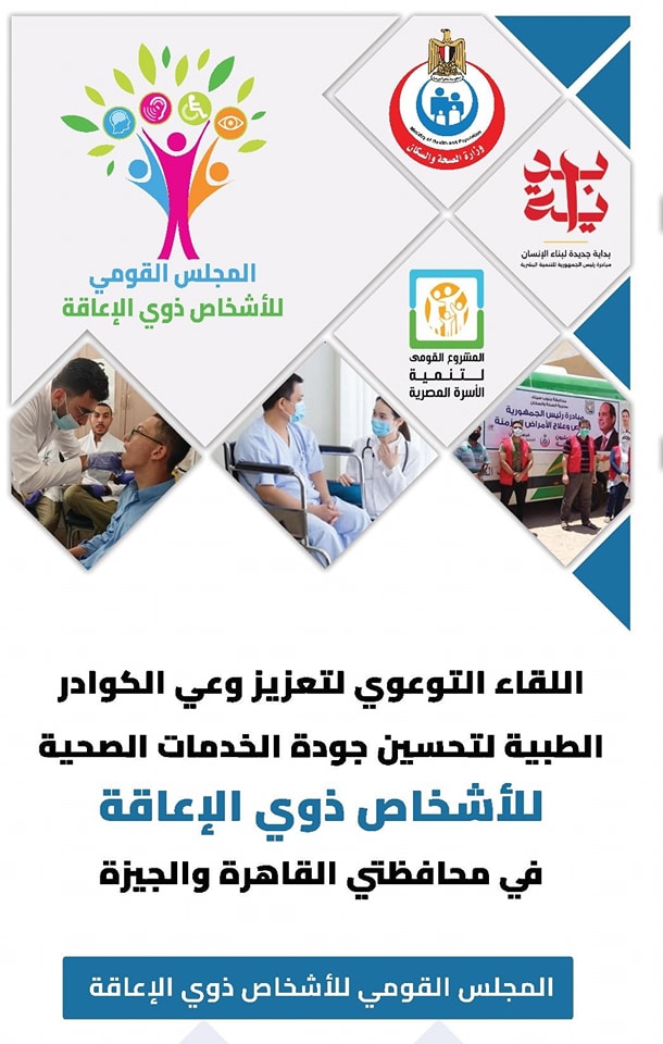 ينظم المجلس القومي للأشخاص ذوي الإعاقة، بالتعاون مع وزارة الصحة والسكان، اليوم الإثنين، لقاءًا توعويًا لتعزيز وعي الكوادر الطبية لمحافظتي القاهرة والجيزة، بهدف تحسين جودة الخدمات الصحية والطبية المقدمة للأشخاص ذوي الإعاقة.