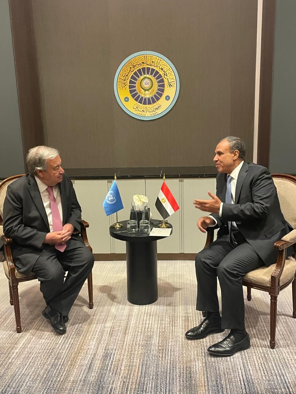 بدر عبد العاطي وزير الخارجية والهجرة المصري يلتقي بالسكرتير العام للأمم المتحدة أنطونيو غوتيريش