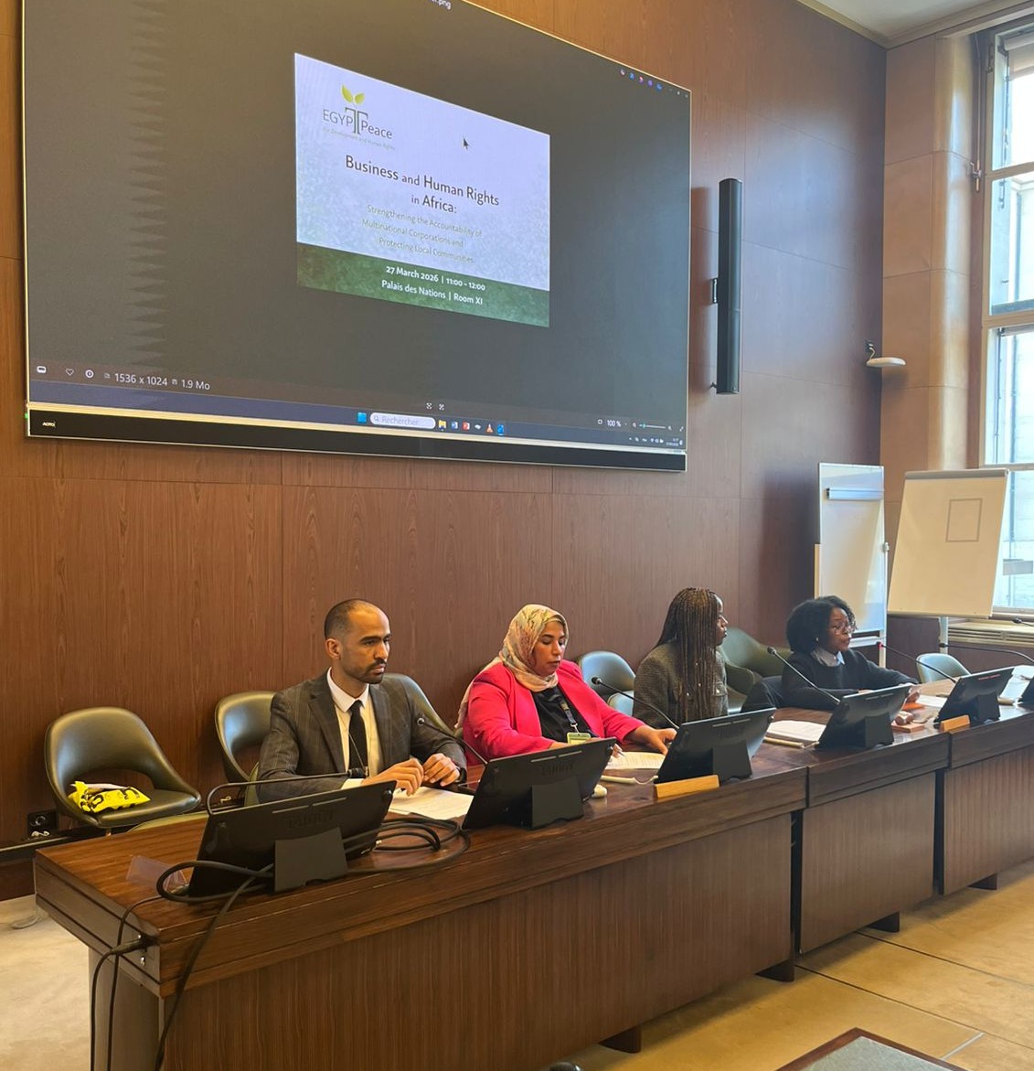 عقدت مؤسسة “مصر السلام للتنمية وحقوق الإنسان” فعالية جانبية على هامش الدورة الحادية والستين لمجلس حقوق الإنسان التابع للأمم المتحدة في مقر الأمم المتحدة بجنيف، ناقشت خلالها تأثير أنشطة الشركات متعددة الجنسيات على حقوق الإنسان في أفريقيا وأميركا اللاتينية، والتحديات المرتبطة بمساءلتها.