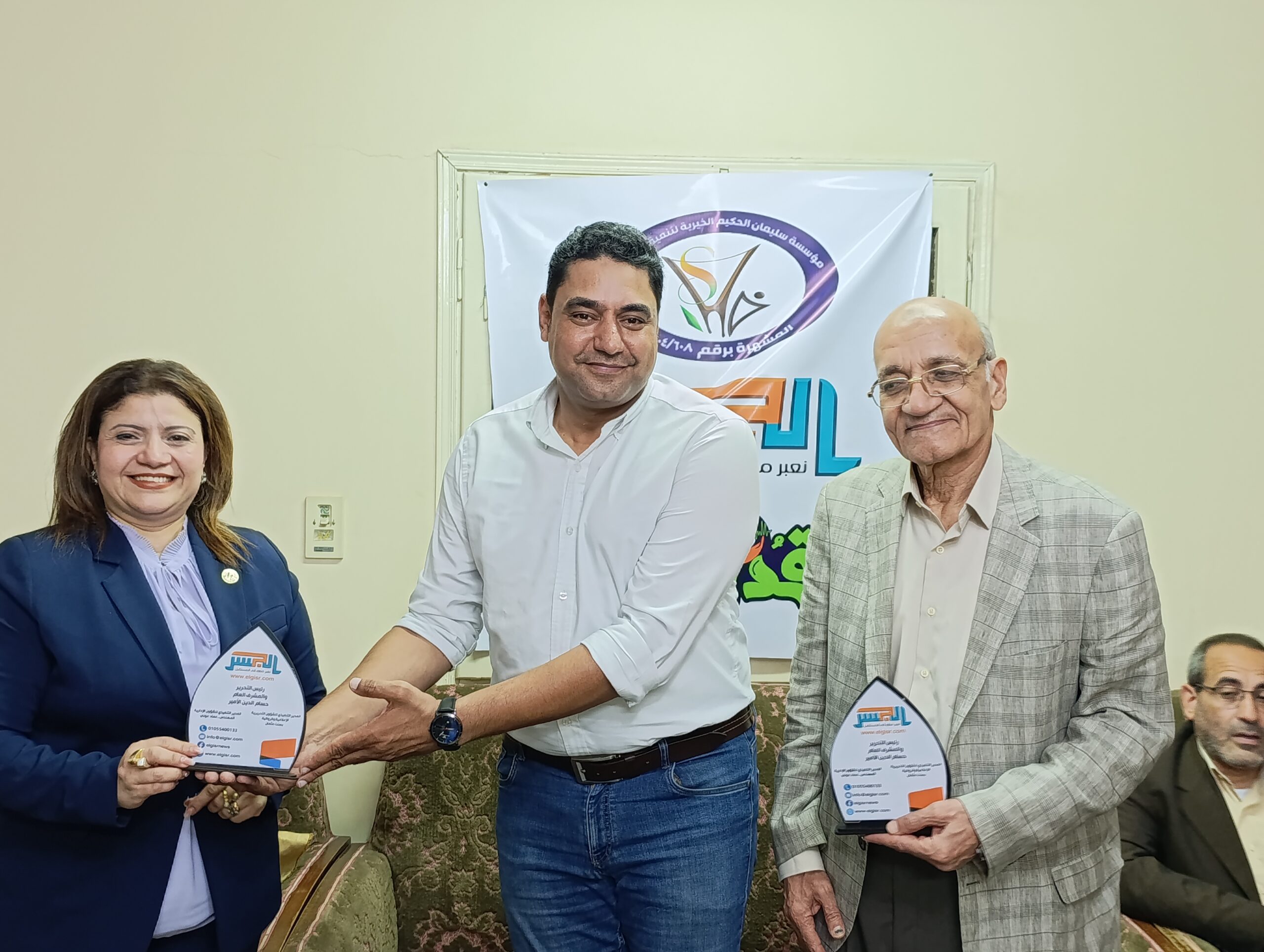 كرم الإعلامي والكاتب الصحفي حسام الدين الأمير، رئيس تحرير منصة الجسر الإخبارية، والمهندس مصطفى عبد الحميد سليمان، رئيس مجلس أمناء مؤسسة سليمان الحكيم الخيرية، الفريق الطبي والتنموي المتطوع في تقديم الجلسات والخدمات التوعوية للمشاركين في اللقاء الطبي – التوعوي “الوعي حياة”، والذي نظمته المنصة والمؤسسة بالتعاون مع مجمع عيادات آمنة شيرازي الطبي بمحافظة أسيوط.