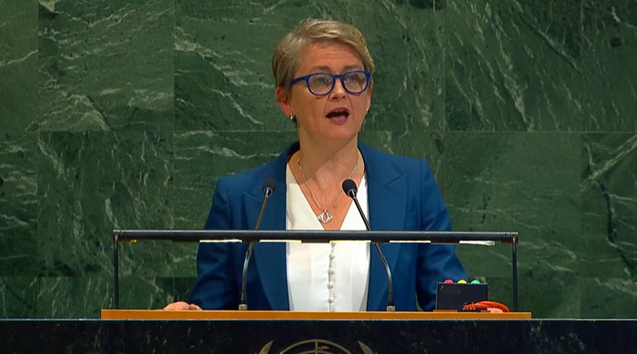 وأضافت في كلمتها أمام المؤتمر الدولي رفيع المستوى حول التسوية السلمية لقضية فلسطين وتحقيق حل الدولتين، أن القرار يعكس أيضا “الخطر الداهم” الذي يواجه هذا الحل “جراء استمرار سفك الدماء، والمجاعة التي صنعها الإنسان، والإرهاب، واحتجاز الرهائن، وتوسيع المستوطنات، وعنف المستوطنين”.