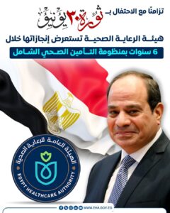 بالتزامن مع احتفالات الدولة المصرية بثورة 30 يونيو المجيدة، أعلنت الهيئة العامة للرعاية الصحية، برئاسة الدكتور أحمد السبكي، رئيس مجلس إدارة الهيئة، عن أبرز إنجازاتها في تطبيق المنظومة خلال السنوات الست الماضية، والتي تُعد أحد أعمدة الجمهورية الجديدة في قطاع الصحة، ومنطلقًا حقيقيًا نحو تحقيق حلم التغطية الصحية الشاملة لكل المصريين.