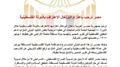 مصر ترحب باعتزام البرتغال الاعتراف بالدولة الفلسطينية
