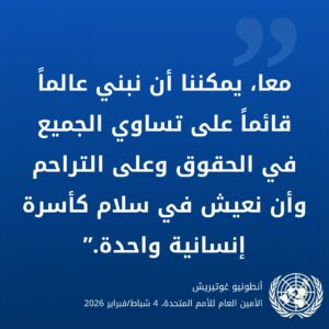 أكد الأمين العام للأمم المتحدة، أنطونيو غوتيريش، أن اليوم الدولي للأخوة الإنسانية، الذي يُحتفل به في 4 فبراير من كل عام، يمثل تذكيرًا عالميًا بأن البشر ينتمون إلى أسرة إنسانية واحدة، رغم تنوع الثقافات والمعتقدات، مشددًا على أن الكرامة الإنسانية قيمة مشتركة لا تقبل التمييز.
